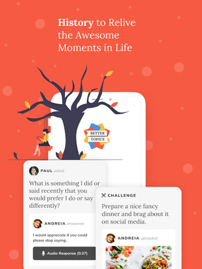 Better Topics is a couple’s relationship app that creates a safe block of time where you don’t do anything else other than have a deep conversation with your partner.