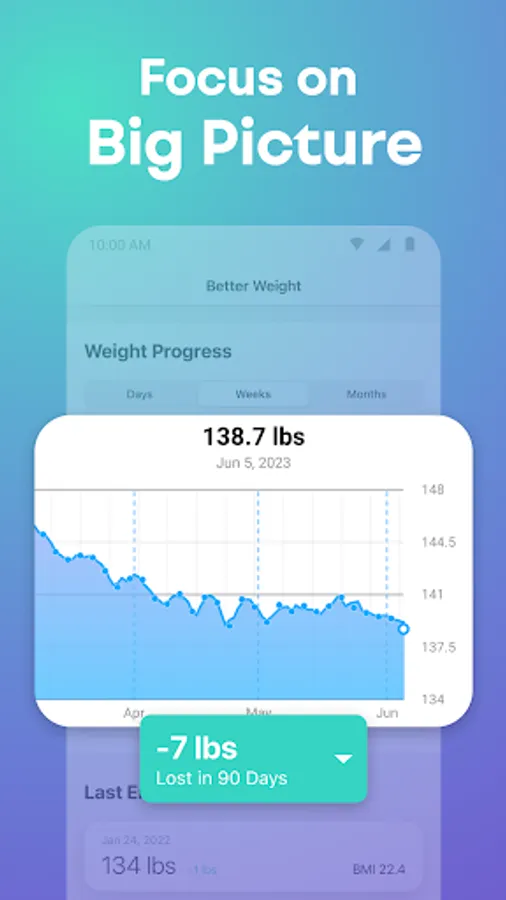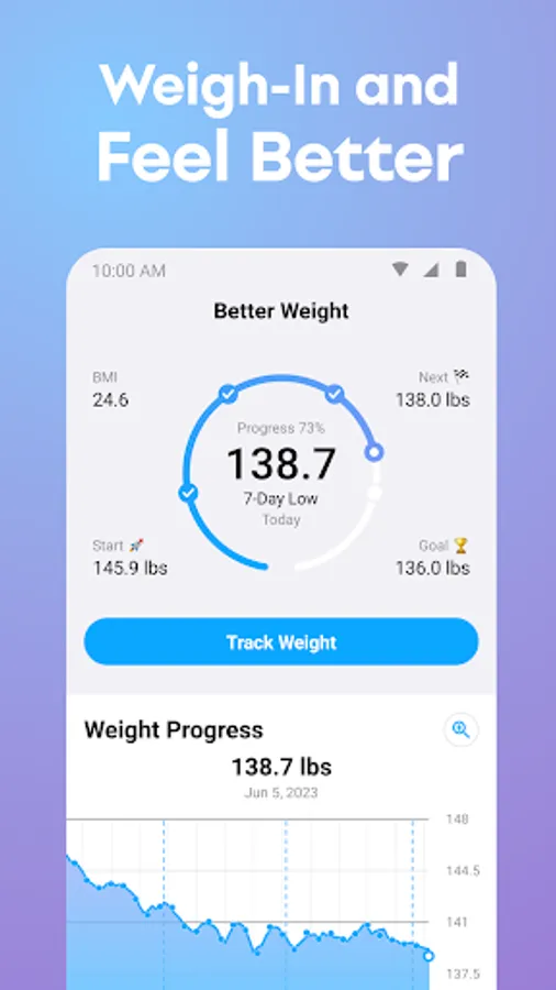 Better Weight app is here to make your journey motivational and more satisfying. We want to make it simple to track progress and motivate you every time you make a step in the right direction.