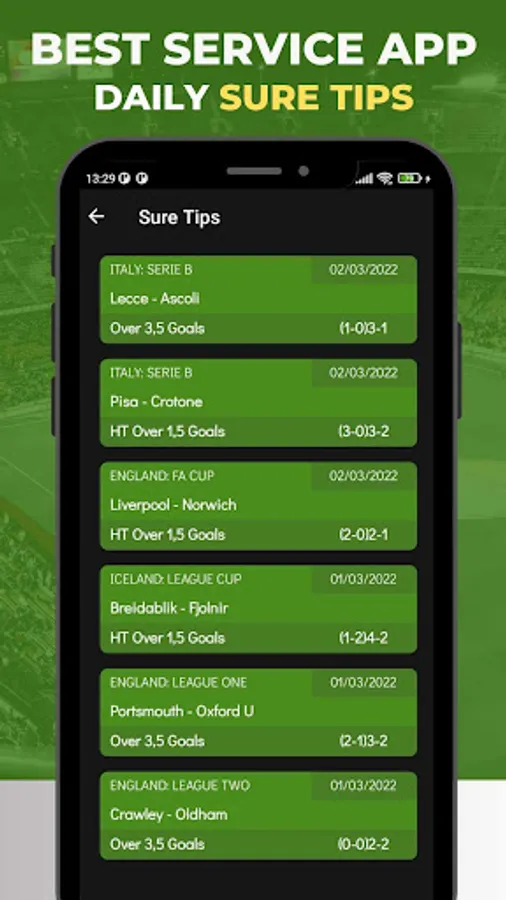 Our team analyzes the data for variety of sports and kick out the best 1X2, O/U, Cards & Corners and Asian Handicap tips to give you the greatest chance of winning every day. Our performance speaks for itself and ongoing accuracy is updated every day and published in the best betting tips app. be sure of using it and making profits. Our expert team in sport betting tips analysis matches and gives best possible sure bets and high odds Sure tips everyday and analysis matches approximately 10 hours every day and work to provide you the best sure betting tips.