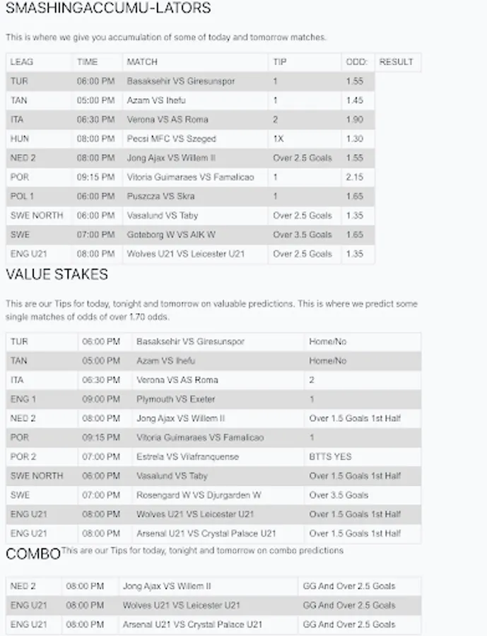 Consistently we are attempting to find sure matches and we post different football tips like Correct Score,1x2, twofold possibility, HT/FT, sure games and large chances games.