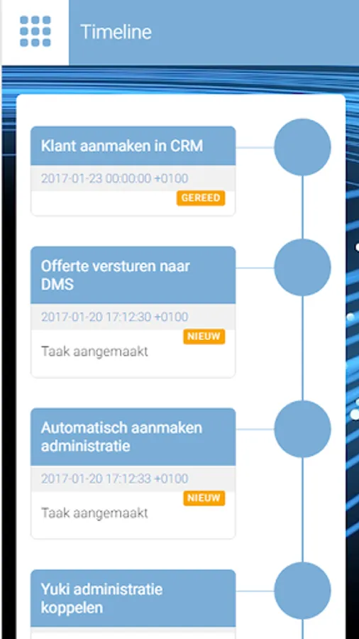 So you can in this app you follow ongoing and scheduled tasks. A clear timeline for each process gives a glance where you left off in this process and what actions who should pick up.