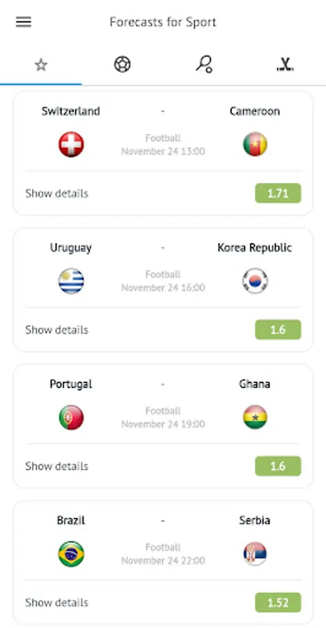 Whether you're a beginner or an experienced bettor, our free sports predictions can help you make informed decisions and increase your chances of success. We use the odds of reputable bookmakers, such as Marathonbet, 1xBet, Winline, BetCity, PariMatch, and Fonbet.