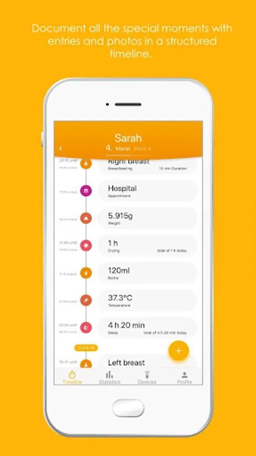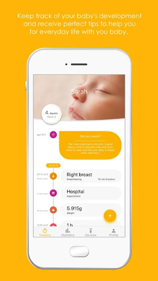 Keep track of your baby's development with the free "beurer BabyCare" app and document all the special moments in a structured timeline.