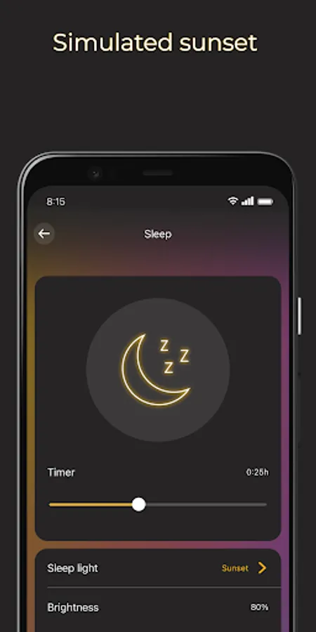 SLEEP – At the end of the day, gently fall into a restful sleep with the simulated sunset, the reddish relaxation light or the mood light with changing colours. The soothing sleep melodies provide additional relaxation.