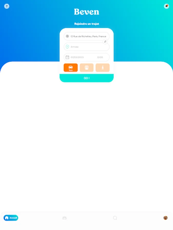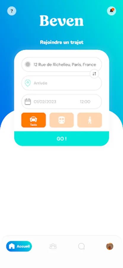 Beven aims to facilitate outings and discover new activities: Bars, cinemas, theatre, bowling, restaurant, concerts, evenings in apartments... In short, allow everyone to enjoy their life! The application can therefore be used for any type of outward or return journey.