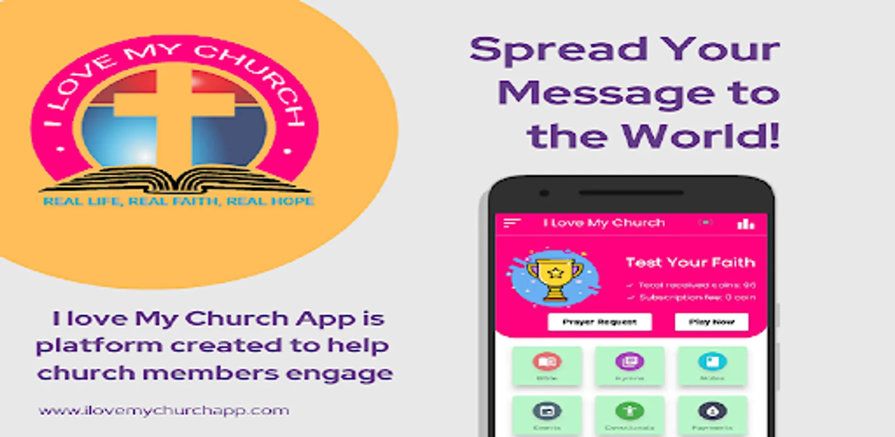 I love My Church App is platform created to help the church members engage and enable members to take interactive sermon notes, listen to messages on the go, access small group material, bible questions, check the prayer/songs list, engage with your real time church newsfeed, give a donation, get resources, updates, and more delivered right to your smartphone device. The app allow you to easily watch and listen to sermons on-the-go, download media for offline listening, register for events and functions, read the Bible, initialize online payment, take notes in church and answer custom bible question.