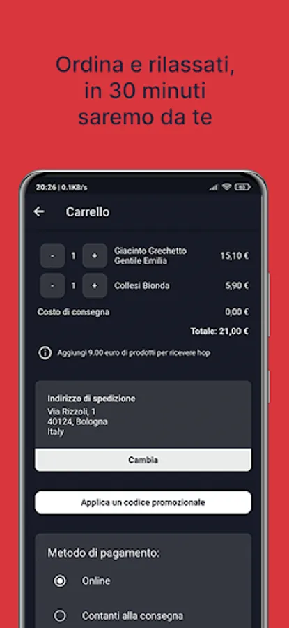 The app that delivers alcohol to you 24/7 has arrived! You can order wine, beer and spirits made in Italy and receive them in 30 minutes at your home.