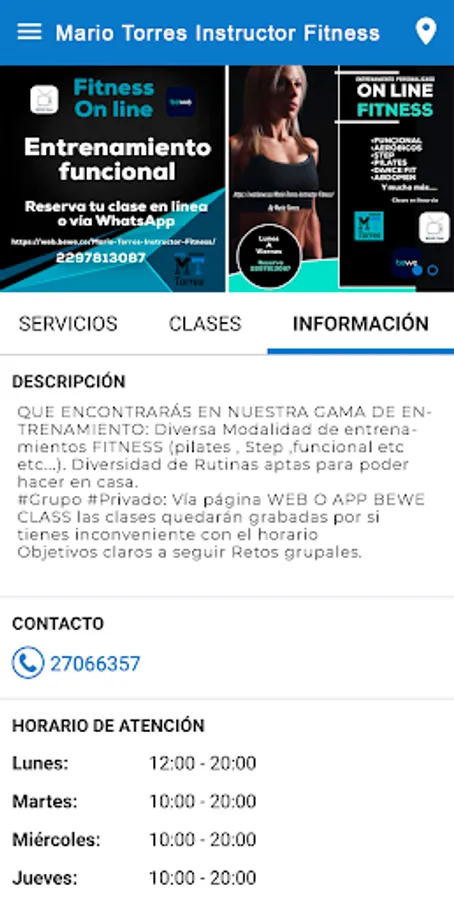 ... FITNESS workouts (Pilates, Step, functional etc etc ...). Diversity of Routines suitable to be able to do at home. #Group #Private: Via WEB page OR APP BEWE CLASS the classes will be recorded in case you have problems with the schedule Clear objectives to follow Group challenges.
