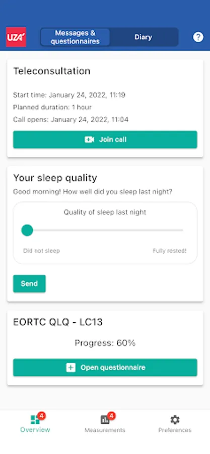 UZA@home supports and guides you during your care journey at UZA. Follow up on every step of your treatment and recovery process online, together with our caregivers. Record your parameters regularly, consult your caregiver via teleconsultation, read your medical records whenever it suits you and prepare for your hospital visit from wherever you want.
