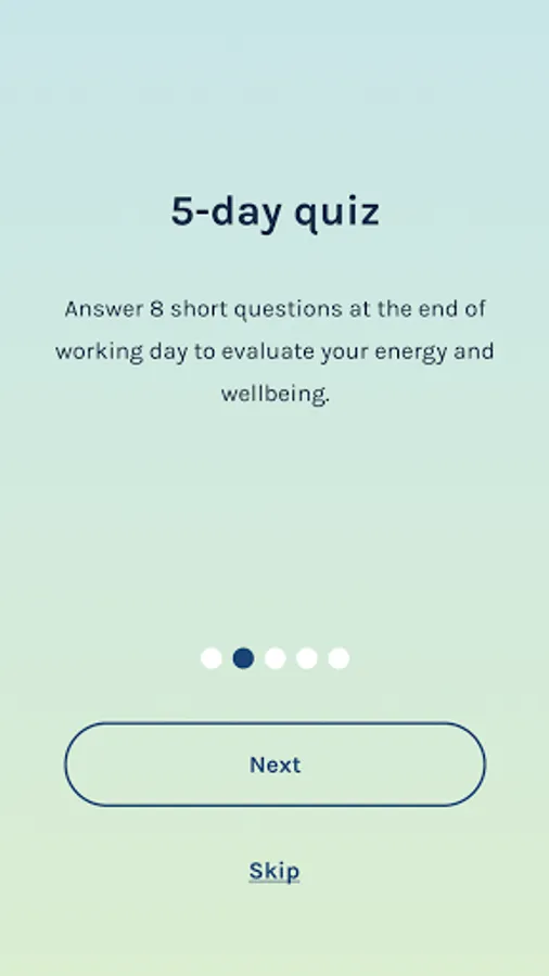 Start to use the BeWell app by filling in the job wellbeing questionnaire. Answer for 5 consecutive days 8 short questions at the end of your working day to evaluate your energy and wellbeing.