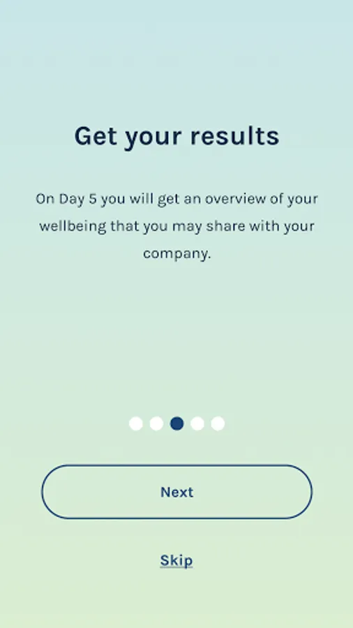 On Day 5 get a detailed overview of your wellbeing. Set personalised challenges to reduce your stress and explore strategies that could help. If necessary, schedule another quiz in a month to track your progress.