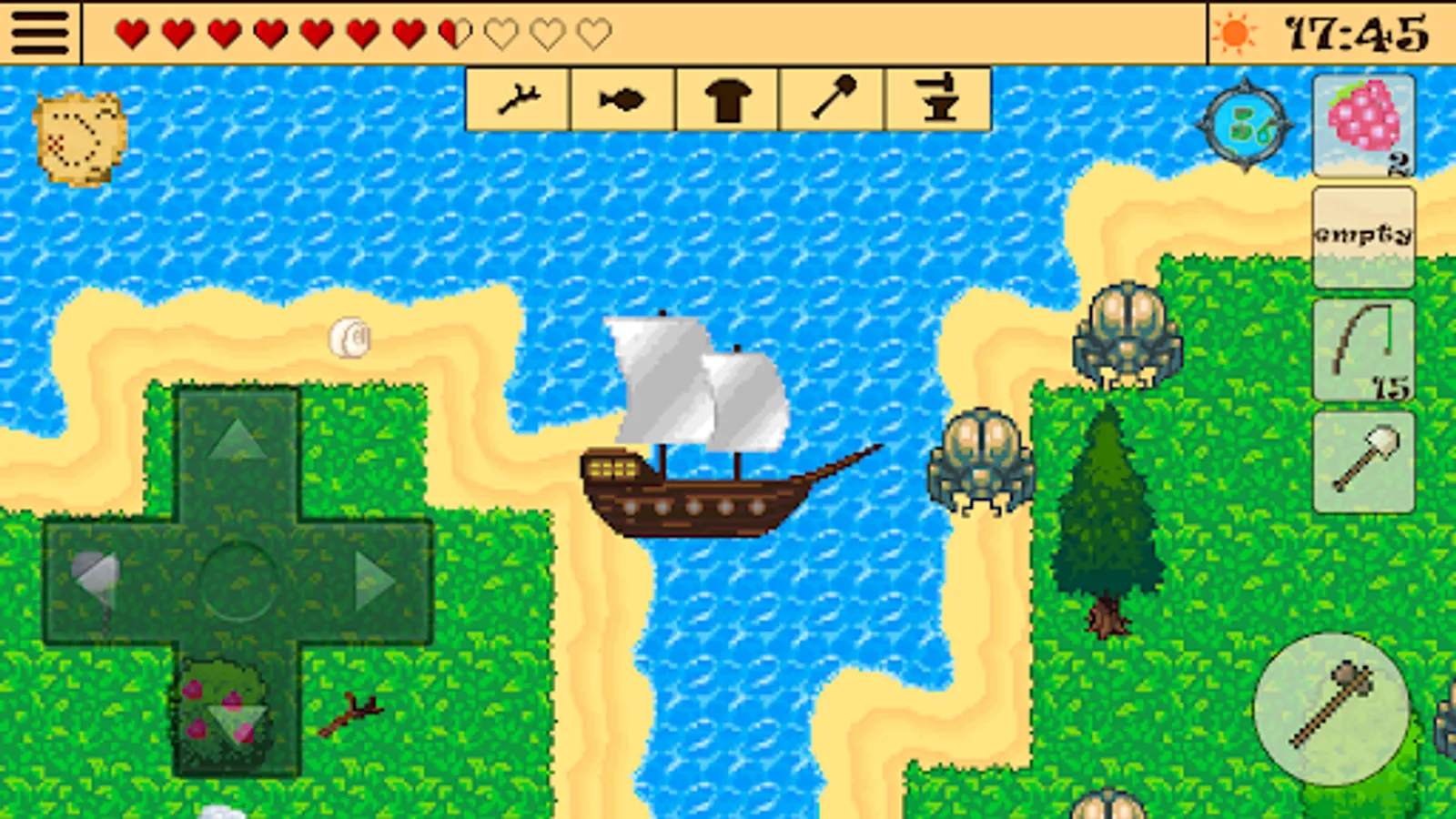 On your way to find the lost treasure, you got into a storm, ran aground a deserted lost island, escaped your ship and became stranded. You must survive, explore dungeon, craft items, be a forager, find the lost treasure, escape the lost island and find a way back home in this addictive free retro RPG game (role playing games).