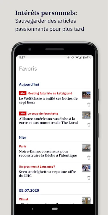 - Vos articles favoris : si vous souhaitez lire un article plus tard, vous pouvez le sauvegarder dans la liste des favoris en un seul clic.