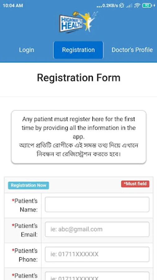 Highway to Health is an Online Electronic Health Platform. There are two separate interfaces for patients and doctors. Patients will be able to fix their appointments, meet with physicians and keep their medical records from the patient interface by registering with valid information, and the Doctor will be able to connect the patient through online video streaming from the Doctor interface. And finally, he can give a prescription, and the patient will receive a prescription on his/her profile. This app is the interface of patients.