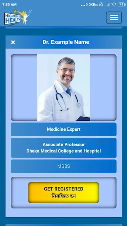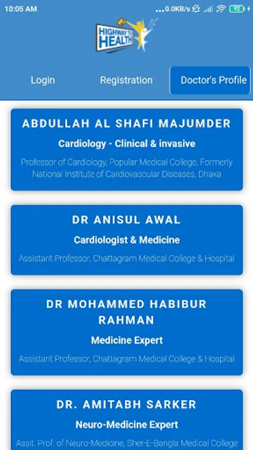 Here you will be able to find and visit all the renowned doctors in Bangladesh. If you are a New Patient in this app then you have to get registered yourself for only first time. Then after logging into your account you have to get registered for an individual doctor just by one click. You may get registered with multiple doctors from our all doctor list in this platform. Then you can set appointment also by adding reports, see appointment details, visit doctors and get the prescription.