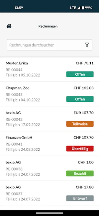 ! If certain functions of bexioGo are not available to you, please ask your bexio administrator to authorise these features for your bexio user account (missing permissions for your user in bexio itself) or the function is not part of your current package.