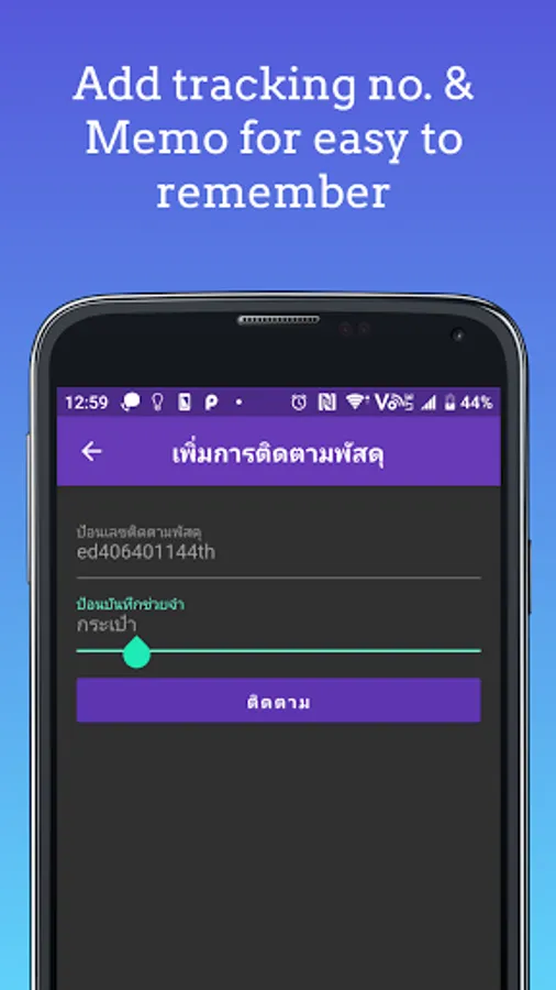 The application allows a user to track and save favorite tracking item no. for later checking.