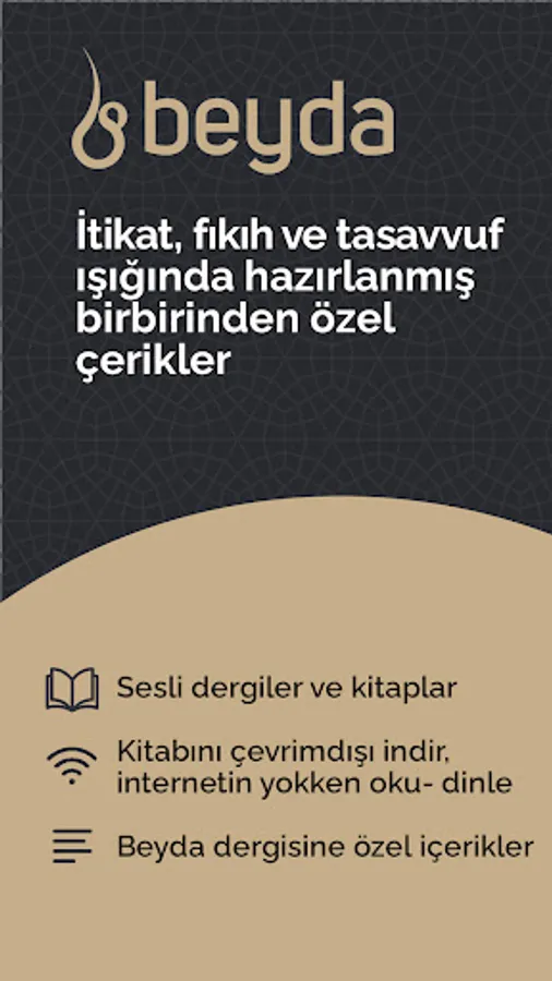 In addition to consumables, grammar and logic; We are a group of students who are educated in the fields of Akait, Tafsir, Hadith and Fiqh and try to apply these sciences to our lives with mystical decency and try to be useful to people. We present the magazines and books prepared in the light of these sciences with our Beyda application.