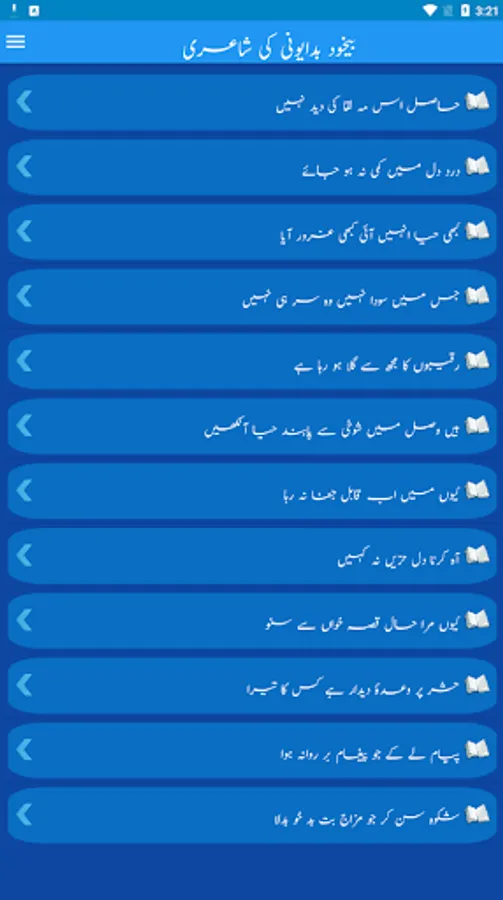 Bekhud Badayuni App contain the best poetry from him. This app contain fine collection of the poet with beautiful design and structure and easy to use. You can copy the ghazals, increase font size, and decrease font size and also share the content of app with your friends directly without copying it from copy button.