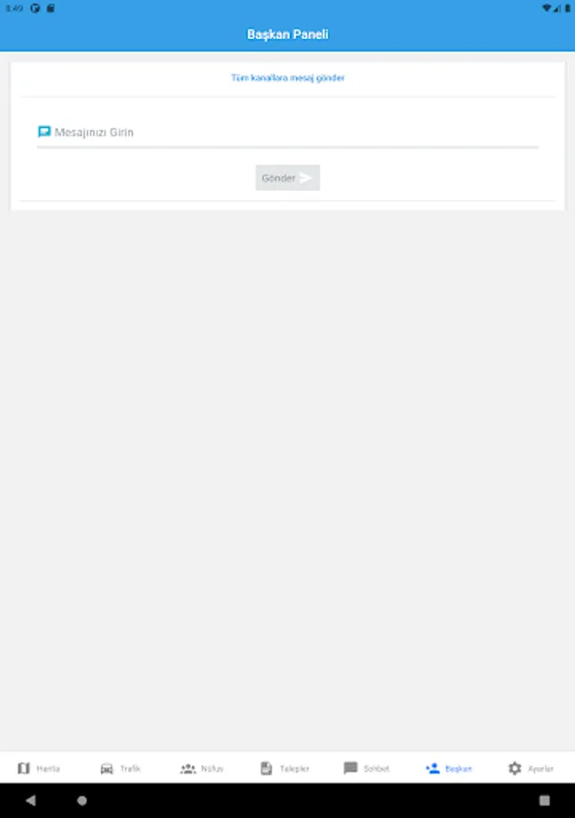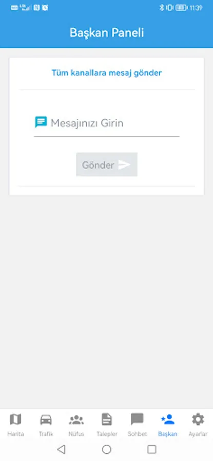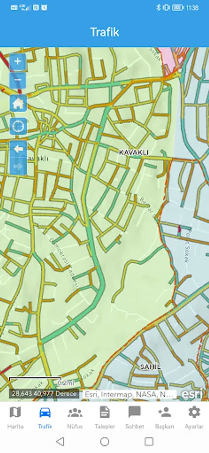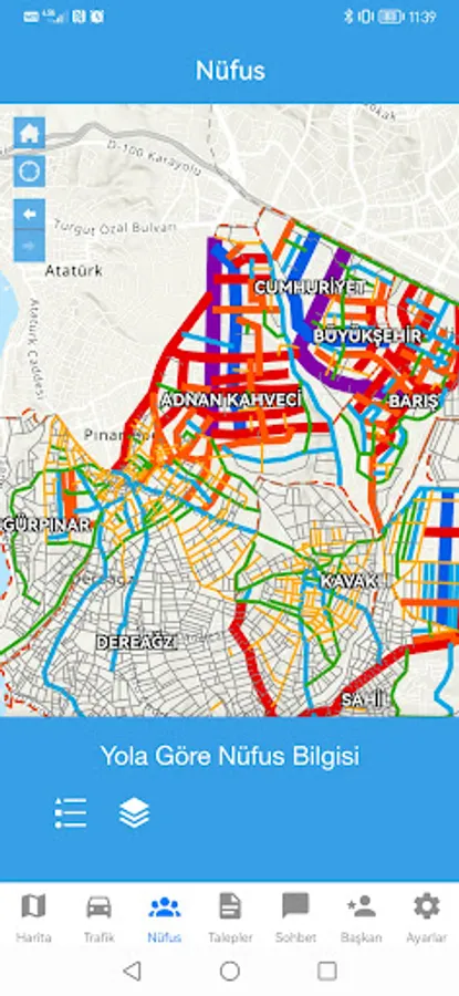In the mobile application, where there are three sub-maps, traffic, population and demand, on the main district map, determinations such as areas with high density, which road should be intervened first, and incoming requests can be made. The application also contains photos, audio, video, text, etc. in order to coordinate the field team and the central team. There is also a chat menu that can be sent.