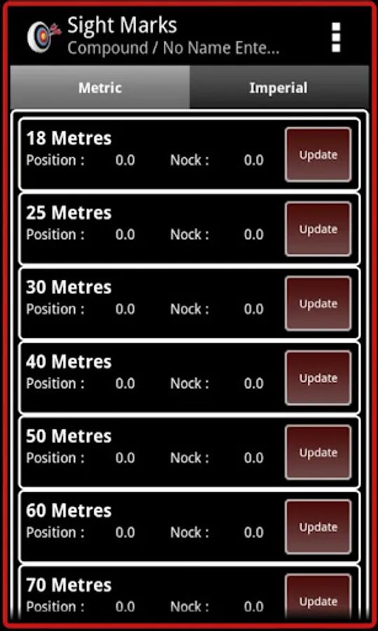 - Record a different set of Sight Marks for any Sets of Arrows for each Bow Type. Notch, Position and a Comment for each Sight Mark