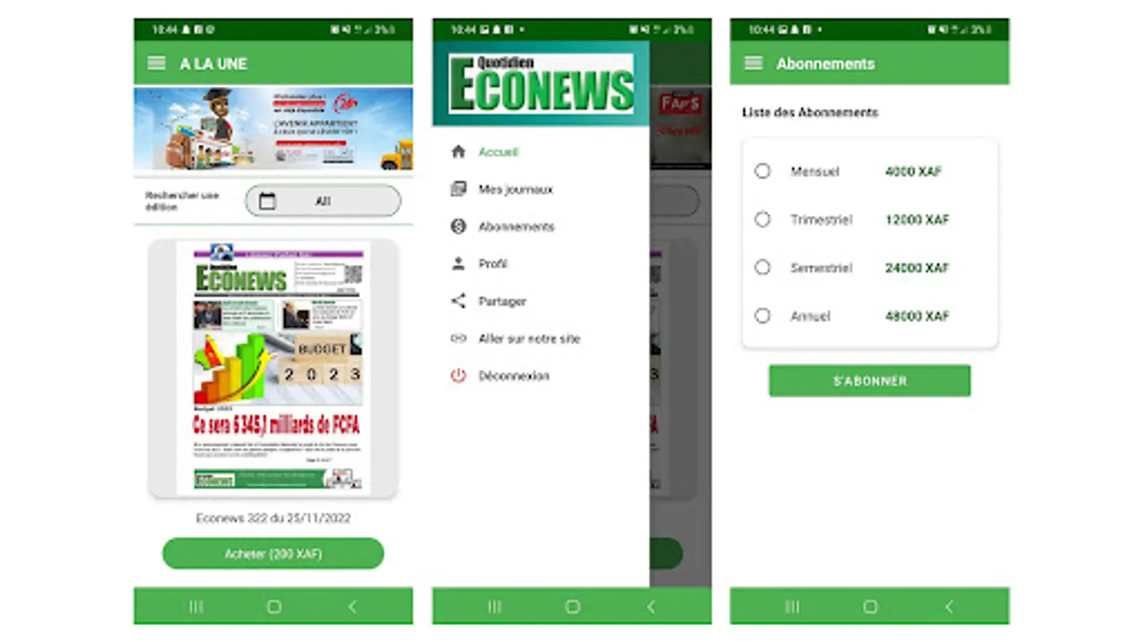 Find out where you want, when you want from 200 FCFA. Benefit from the best of the press on Quotidien Econews.