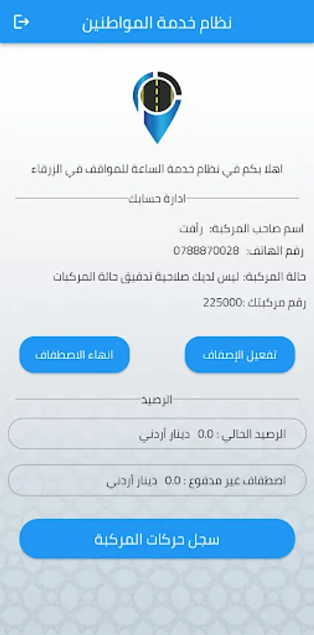 The application enables users of the public parking service in the city of Zarqa to manage their accounts and activate their queuing when parking in the streets that fall within the organization of the paid queue, and they can also cancel the queue upon completion, charge their balance, pay previous violations and fully manage their account without the need to refer to the Autopark employees.