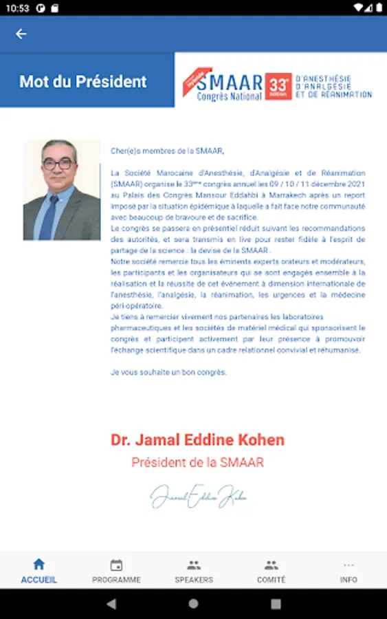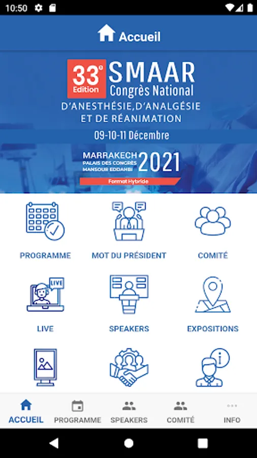 The Moroccan Society of Anesthesia, Analgesia and Resuscitation (SMAAR) is organizing the 33rd annual congress on December 09/10/11, 2021 at the Mansour Eddahbi Congress Center in Marrakech