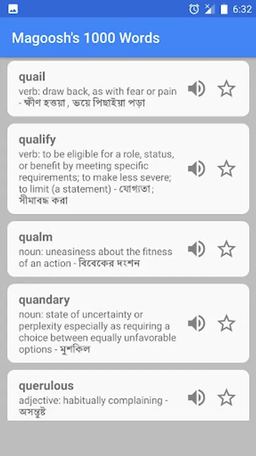 This app contains the Magoosh's top 1000 words with Bangla meaning for GRE preparation. Pronunciation of each word is also available. A great app for those who are starting the GRE exam preparation. You can also bookmark your favorite words to easily find the words you want to remember.