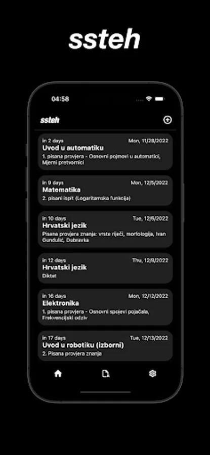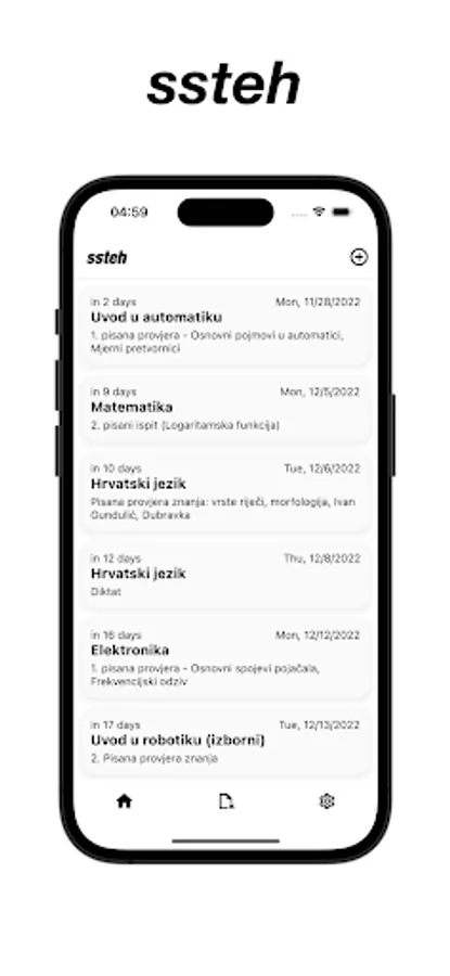 SSTEH is an app for students of Technical School Zadar to use, upload, store and view documents. Sorted by class and subject. There is also integration with Ednevnik where it will show you the upcoming exams on the home page. (You have to login with your ednevnik account to see it).