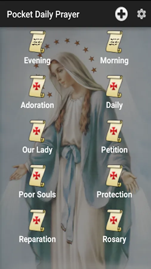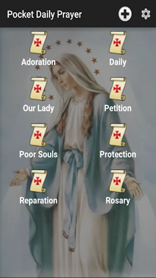 Once you create a prayer list, you can add prayers from the supplied lists by selecting the prayer and choosing your list to add it to. The supplied lists are distinguished by a red cross.