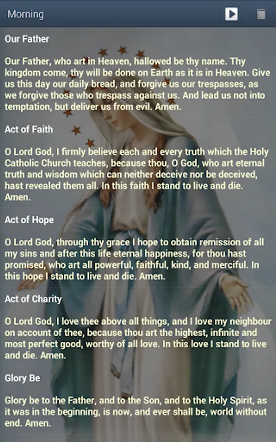 Pocket Daily Prayer allows you to create your own prayer lists from a number of Traditional Catholic prayers, including the Rosary, and includes audio for each prayer.