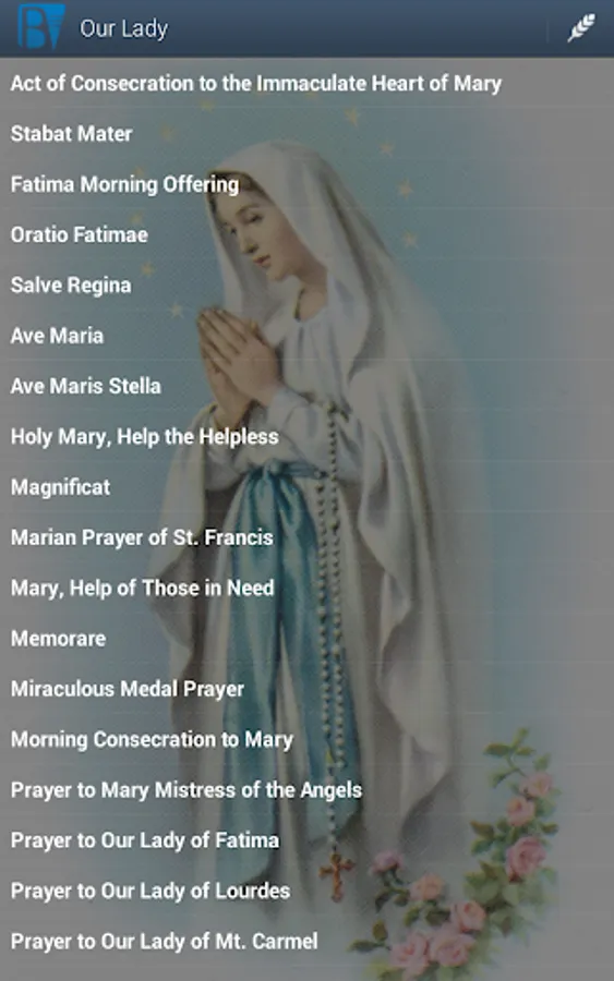 Create your own prayer lists from over two hundred of the best loved Catholic prayers.