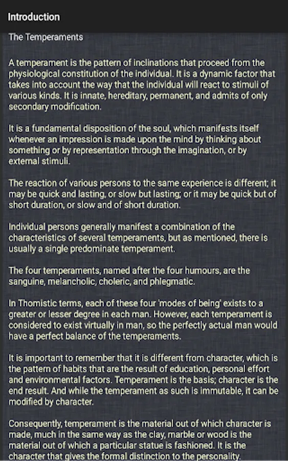 A knowledge of the temperaments is crucial for understanding and improving ourselves, for guiding our children, and for improving our relationships with other people. It is especially important for those engaged in the pursuit of virtue.
