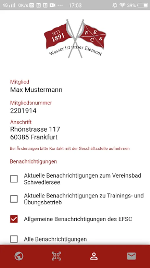 In addition, members can receive current information about the club, the Schwedlersee and the training and exercise operations via push notification in the app.