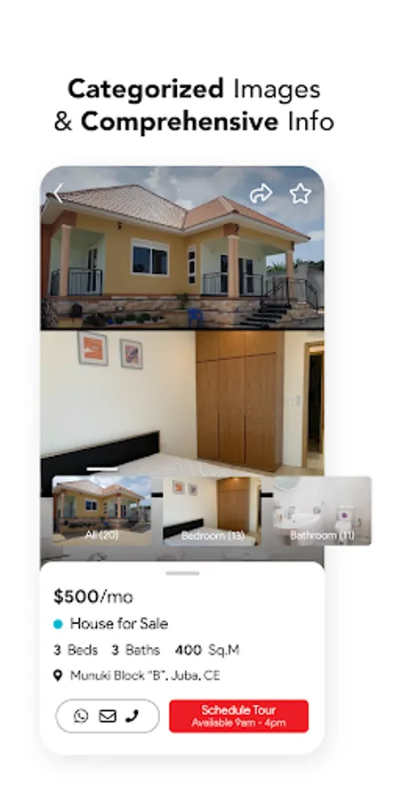 - Detailed info: e.g Location, total Bedrooms, Size etc.