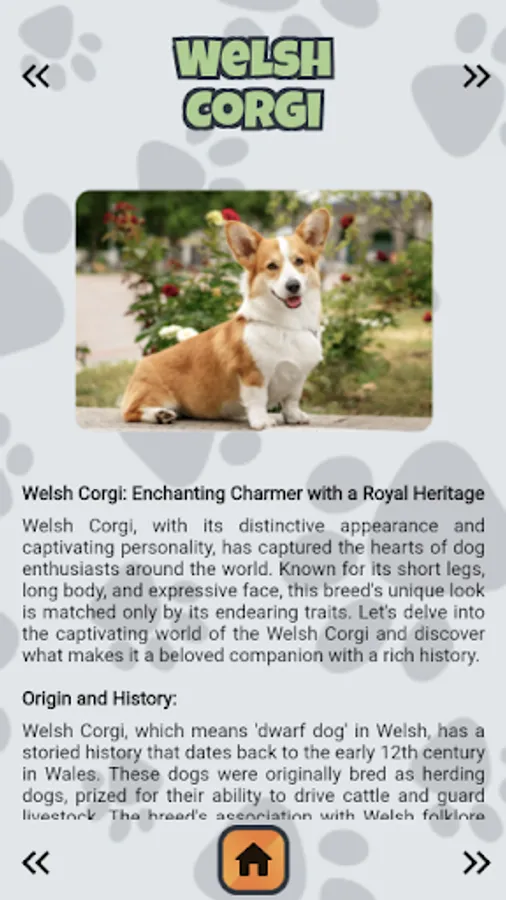 The DogPedia app is a guide, that will help you with the details regarding most popular dog breeds!
