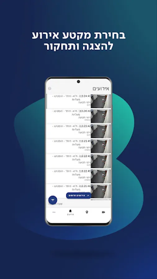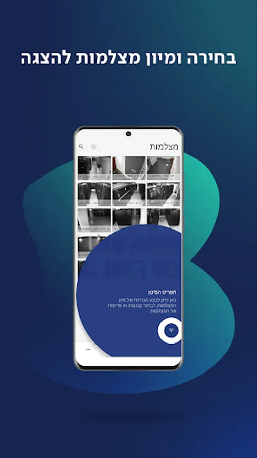 • האפליקציה מאפשרת צפייה בכל מצלמה המקושרת לשירות ברמת סניף, אתר או עיר