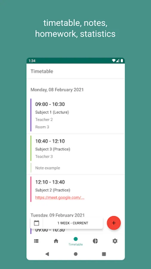 Also in the application, you can add homework, exam and keep statistics of grades on the subject