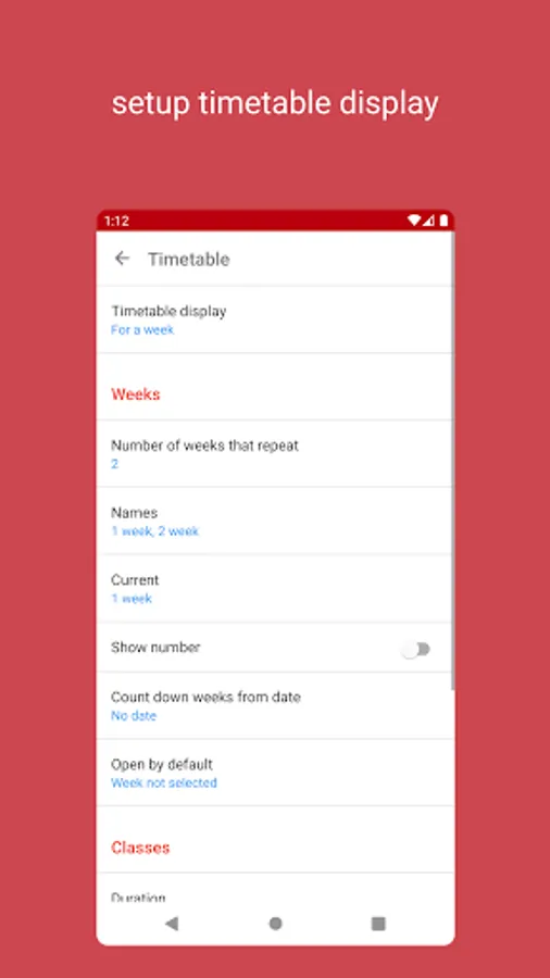 Timetable settings: