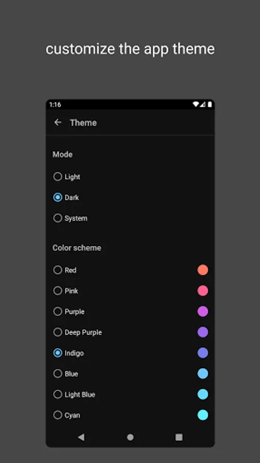 • Turn on a dark theme and choose a theme color