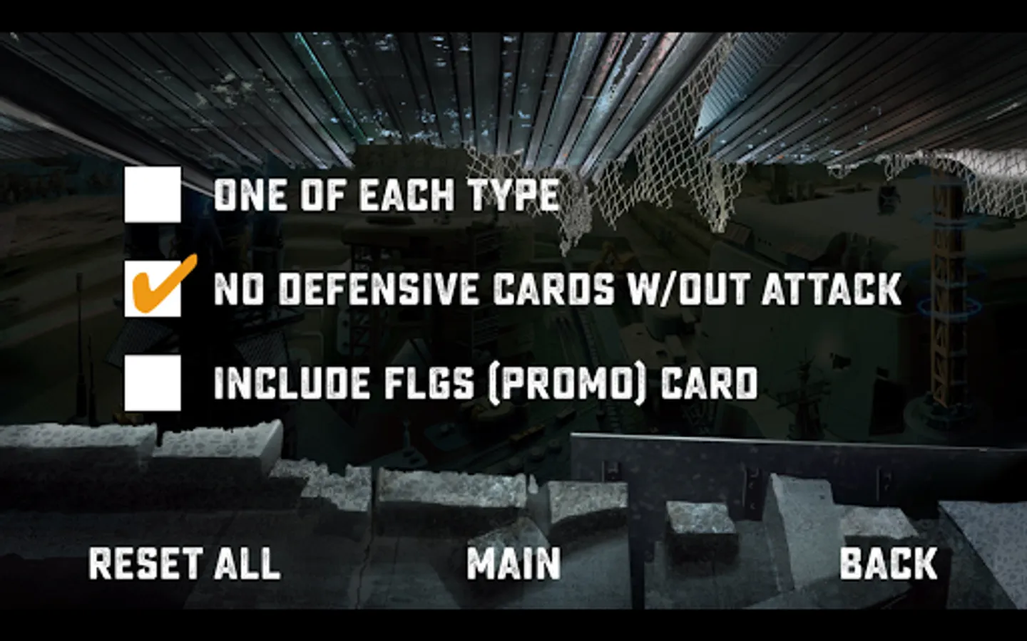 There are a number of other options as well, including the ability to always have one of each type of card, and to ensure that defense cards are only present if there are attack cards available.