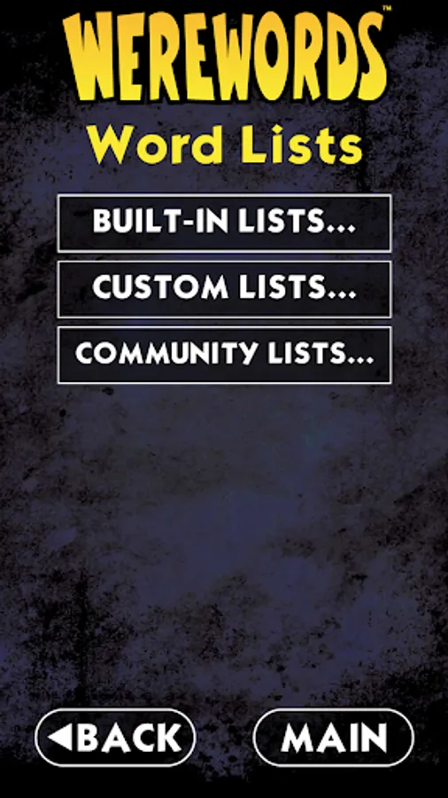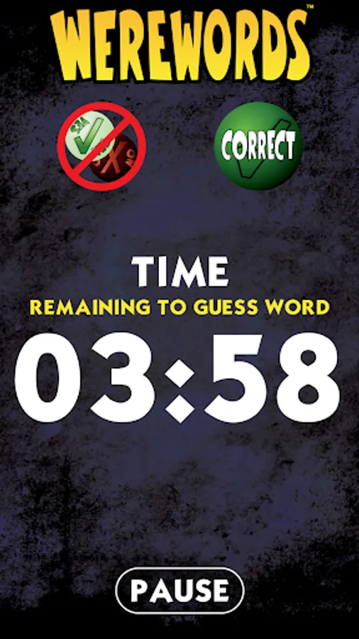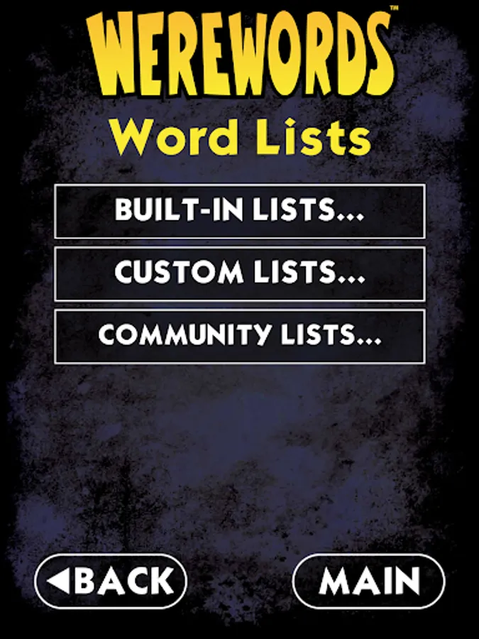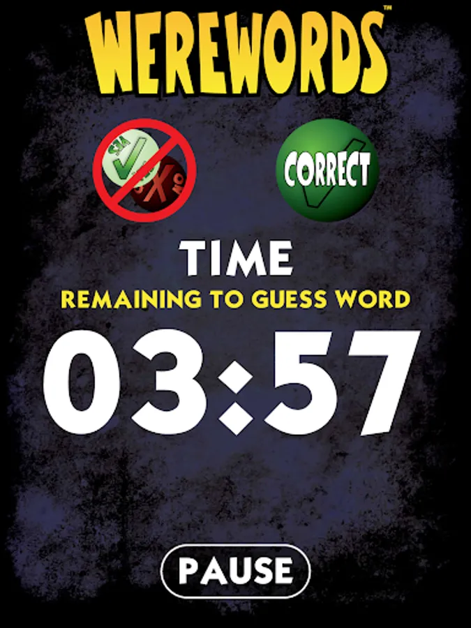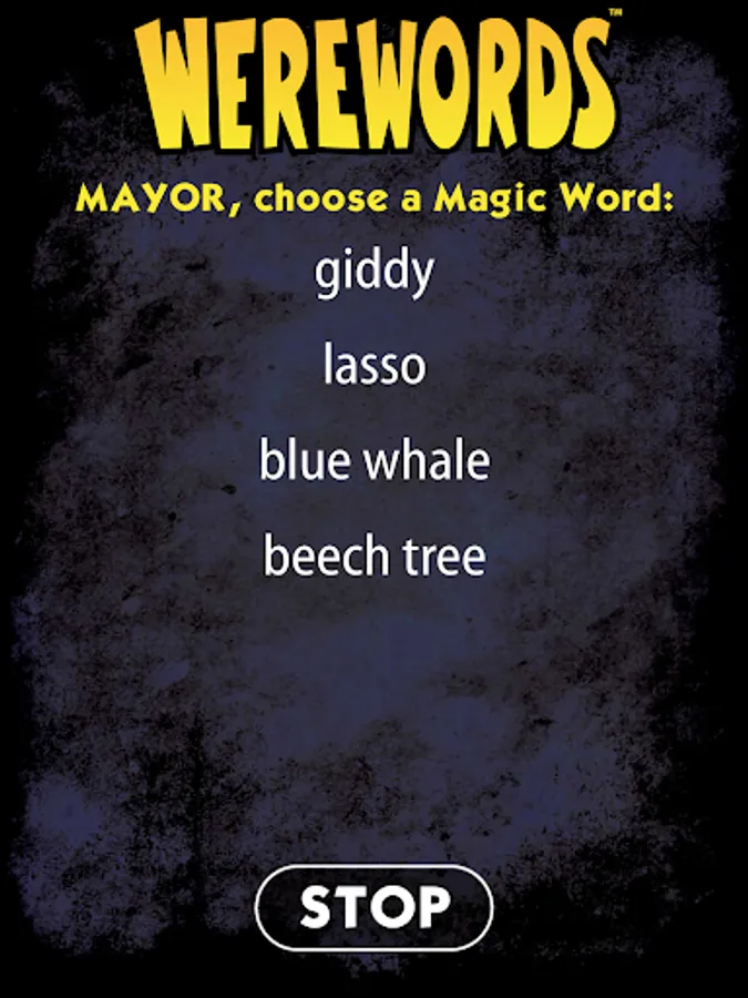 The Werewords app also includes the following options (tap the gear to adjust them):