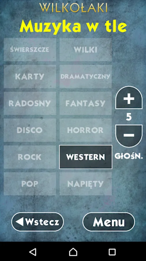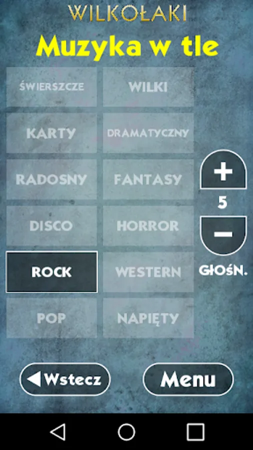 Background Settings allow you to change the background music heard in the background narrative and its volume. These sounds are played during the night to help drown out the rustle of cards, when you watch them or move.