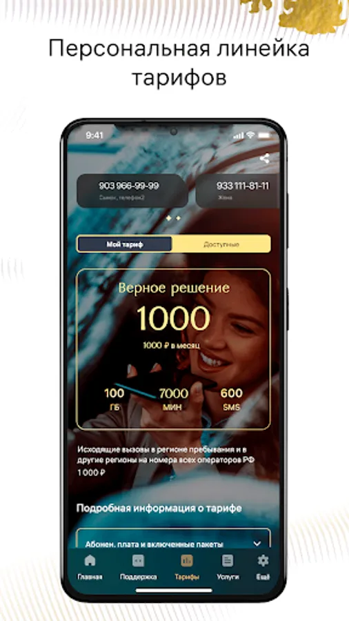 The Unlimited application is a personal account that is always at hand: easy management of numbers, tariffs and mobile services.
