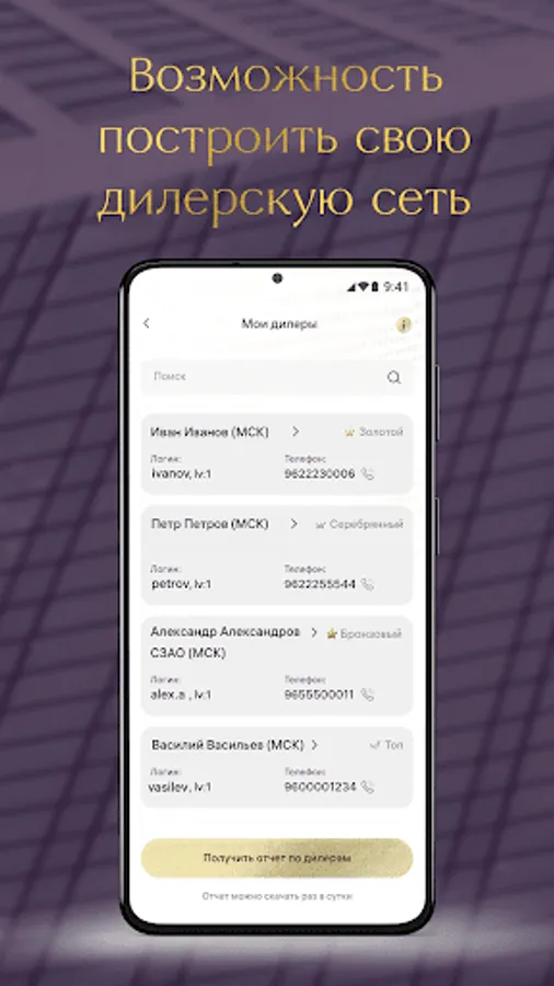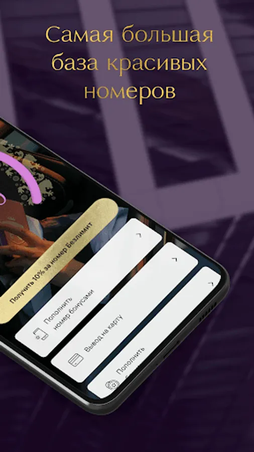 Build your dealer network. Open access to the database of beautiful numbers for relatives and friends. For each new number activation you get a percentage.