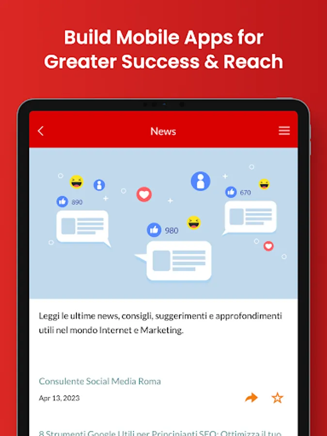 Create customized applications to enhance your business. Use our App in order to have a preview or your App mobile.