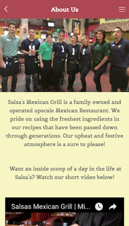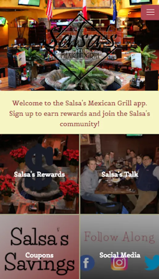 This app is targeted to inform and engage clients of Salsa's Mexican Grill. It will provide them with updated specials and events at the restaurant. Additionally, it will offer rewards and coupons to its users.