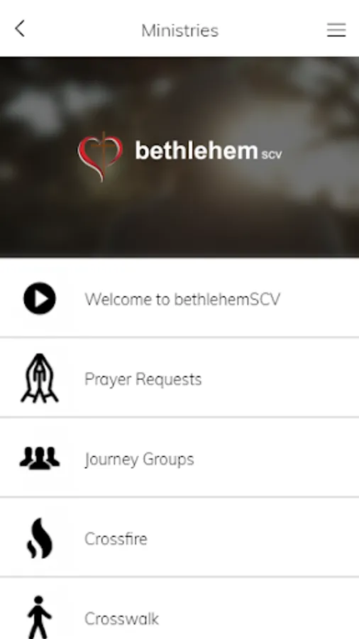 The bethlehemSCV App is designed to be used by members and friends of bethlehemSCV, a Lutheran Church of the Missouri Synod, located in Santa Clarita, California. The primary purpose of the App is to provide coordinated communication around all of the ministries and activities of the Church. From access to Sermons, teaching materials, and Church videos, to up-to-date information about events and activities, as well as interactive community messaging forums - our App is the digital place where our members and friends come together.