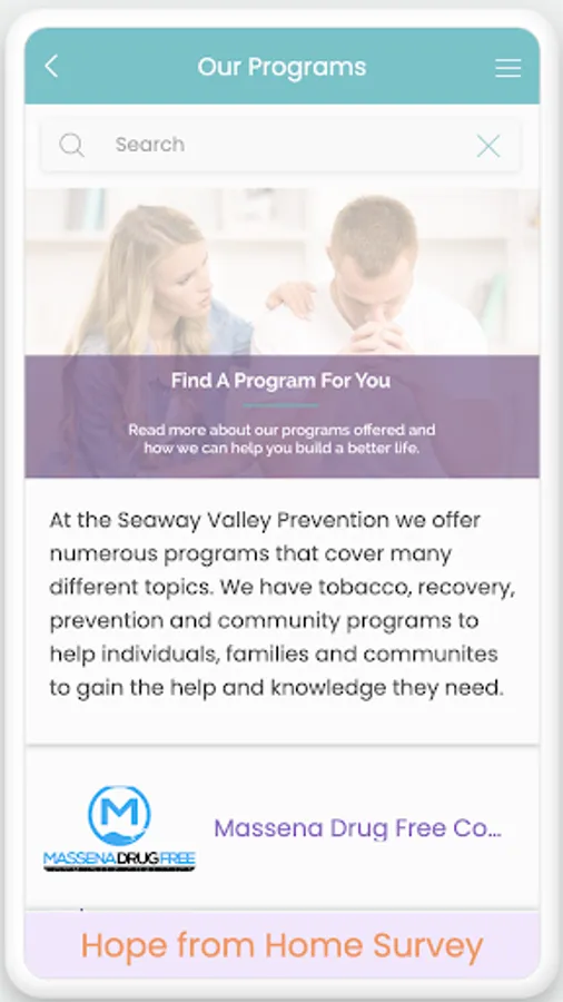 The Seaway Valley Prevention Council is based in Ogdensburg, NY and provides treatment programs and options for people in need of support services. The app features information about the council, interactive map to find providers, directory of services, treatment finder & more.